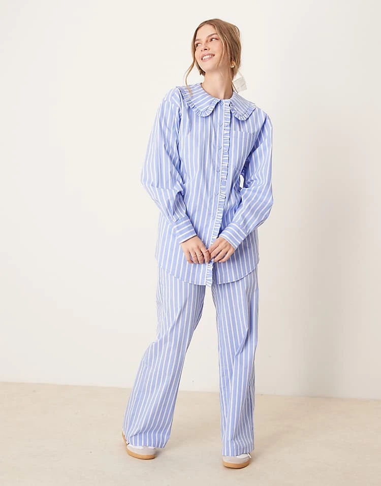 Glamorous Tie Front Volume Sleeve Shirred Maxi Dress In Grey And Black Stripe For Women Grey Black