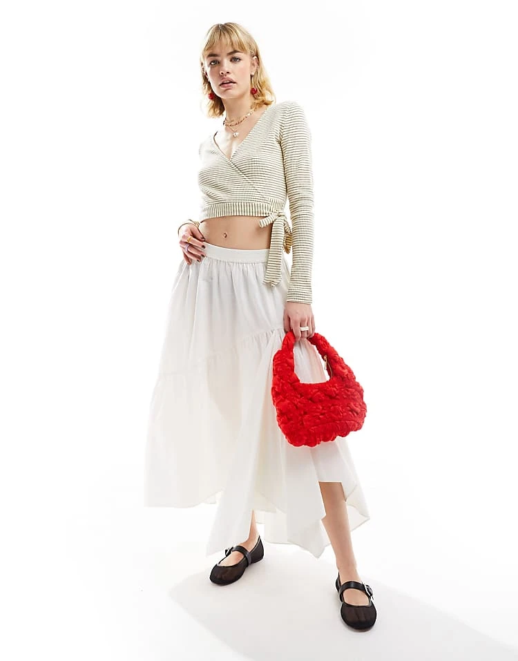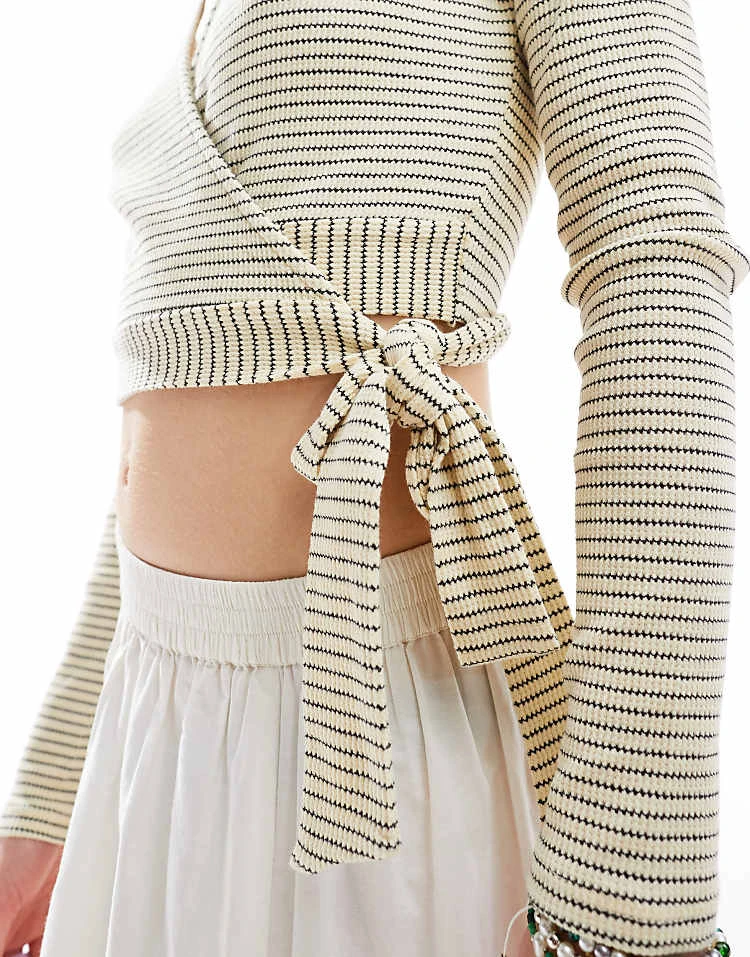 Glamorous Tie Front Volume Sleeve Shirred Maxi Dress In Grey And Black Stripe For Women Grey Black
