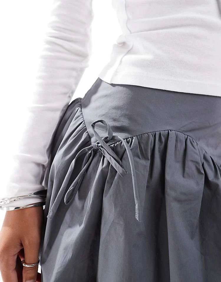 Glamorous Tie Front Volume Sleeve Shirred Maxi Dress In Grey And Black Stripe For Women Grey Black