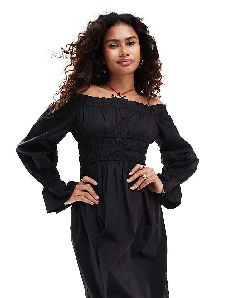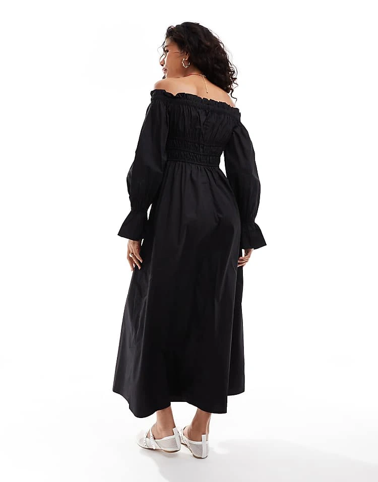 Glamorous Tie Front Volume Sleeve Shirred Maxi Dress In Grey And Black Stripe For Women Grey Black