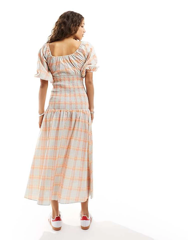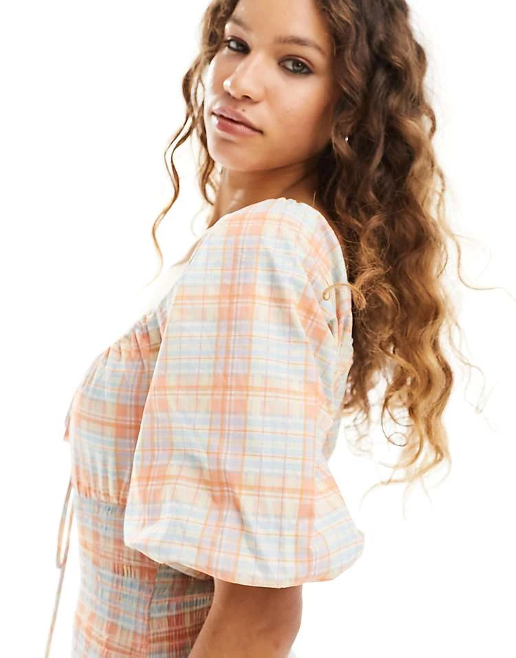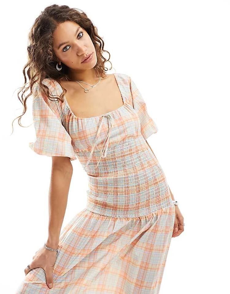 Glamorous Tie Front Volume Sleeve Shirred Maxi Dress In Grey And Black Stripe For Women Grey Black