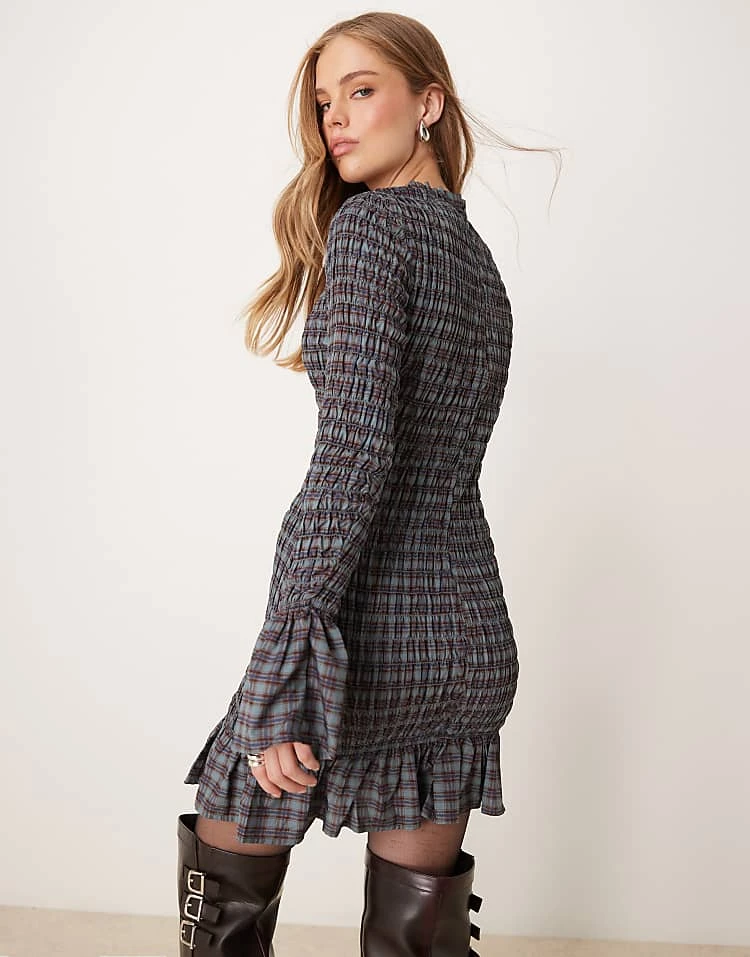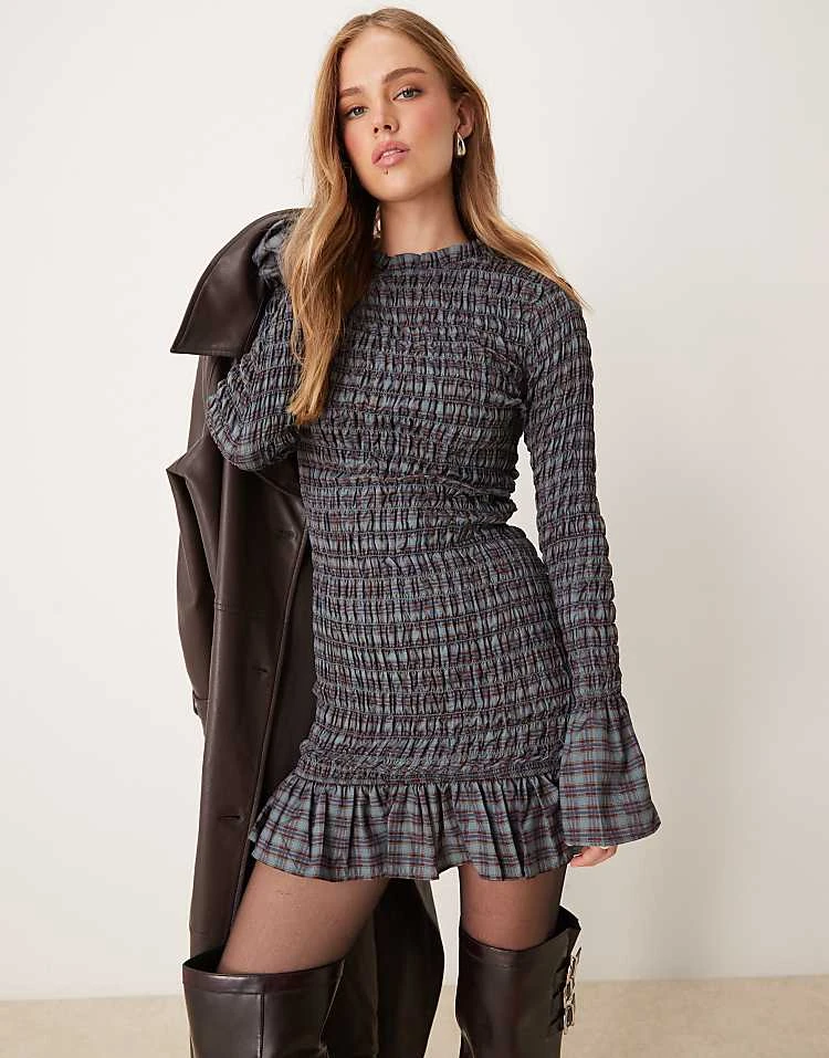 Glamorous Tie Front Volume Sleeve Shirred Maxi Dress In Grey And Black Stripe For Women Grey Black