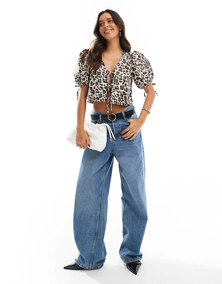 Glamorous Tie Front Volume Sleeve Shirred Maxi Dress In Grey And Black Stripe For Women Grey Black