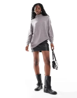 Glamorous High Neck Oversized Slouch Jumper In Mushroom Knit For Women
