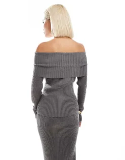 Glamorous Off Shoulder Rib Knit Jumper In Charcoal Co-ird For Women