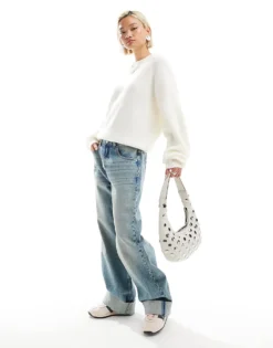 Glamorous Relaxed Knitted Jumper With Rosette Detail In Cream For Women