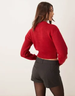 Glamorous Fitted Cardigan In Red With Heart Buttons For Women True Red