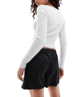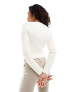 Glamorous Square Neck Lightweight Rib Knit Jumper Cream For Women