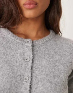 Glamorous Rib Knit Button Front Cardigan In Grey Marl For Women
