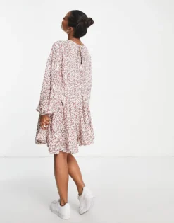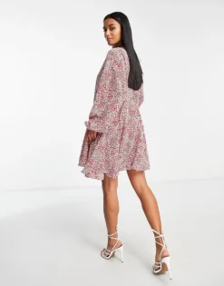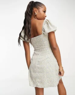 Glamorous Petite Square Neck Tie Back Midi Tea Dress In Mint Lilac Ditsy For Women Mint Lilac Floral