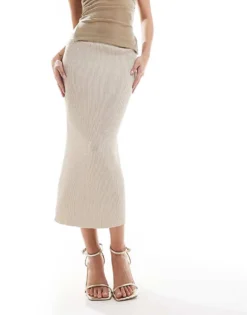 Glamorous Maxi Bodycon Skirt In Purple Green Stripe Knit Co-ord For Women Green Purple Stripe